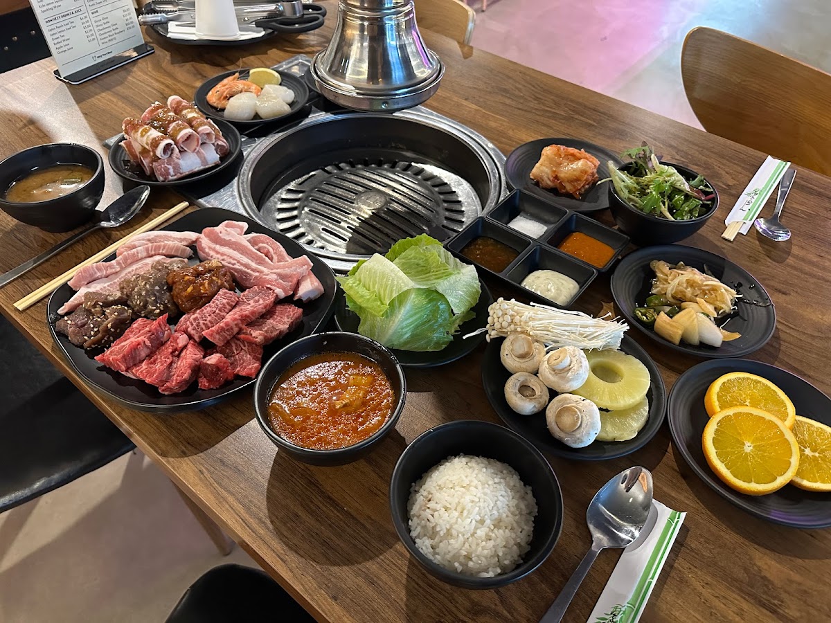 First Korean BBQ which wasn’t help yourself I assume to prevent wastage. Meats appeared good quality and fresh. Salad bar and deserts on offer could be better given the price. Was clean and tidy and fit out was good. Enjoyed the frozen treats they had on offer. Could be a little cheaper to entice me back.